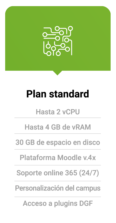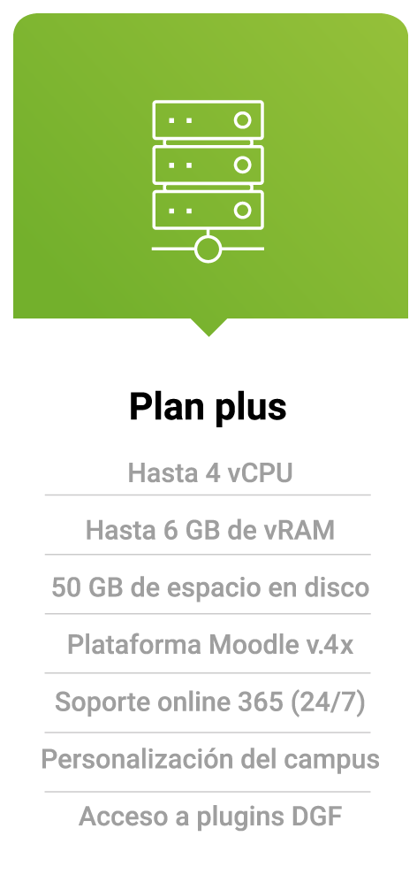 Elige uno de nuestros planes de hosting y disfruta de una plataforma totalmente personalizada y preparada para afrontar cualquier iniciativa formativa.